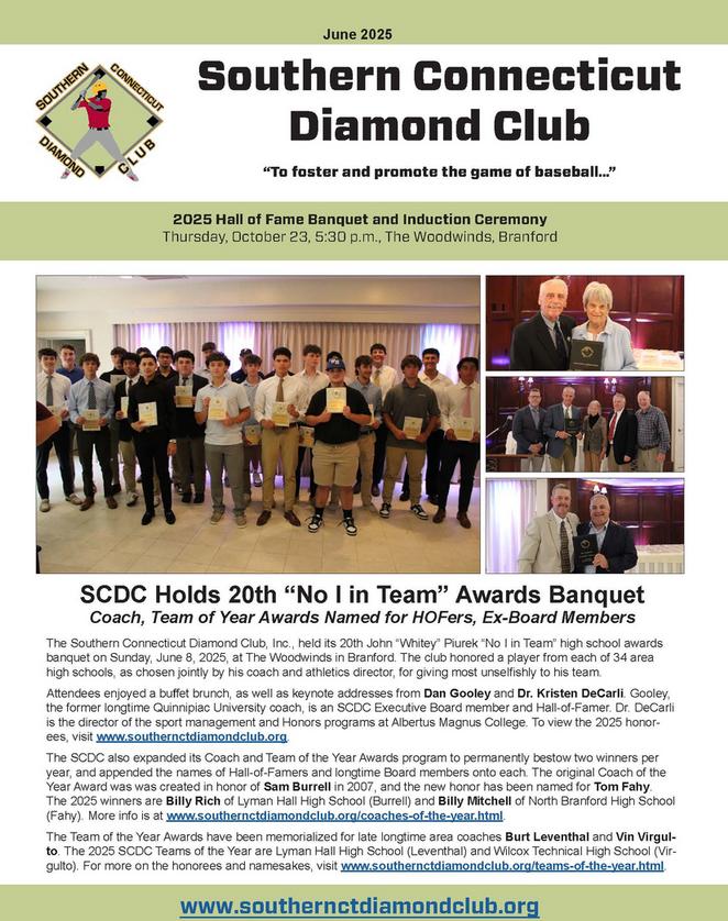 The Southern Connecticut Regional Diamond Club was originally formed with one goal in mind - to promote the great game of baseball in the region! That simple mission continues in the dedication and volunteer work of its members.